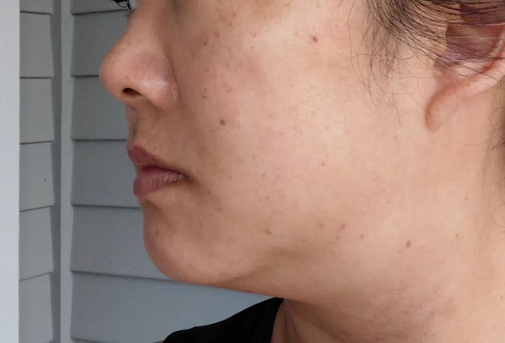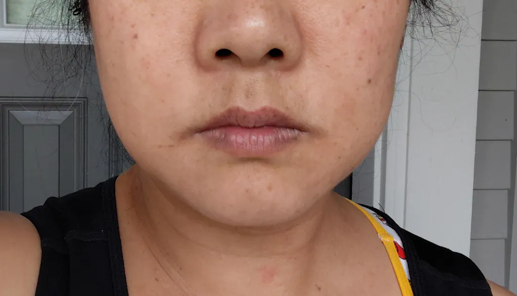 I notice my skin has less flaky skin , reduce redness, and a smoother texture. The product texture is very light. Application was easy with a pump bottle.
